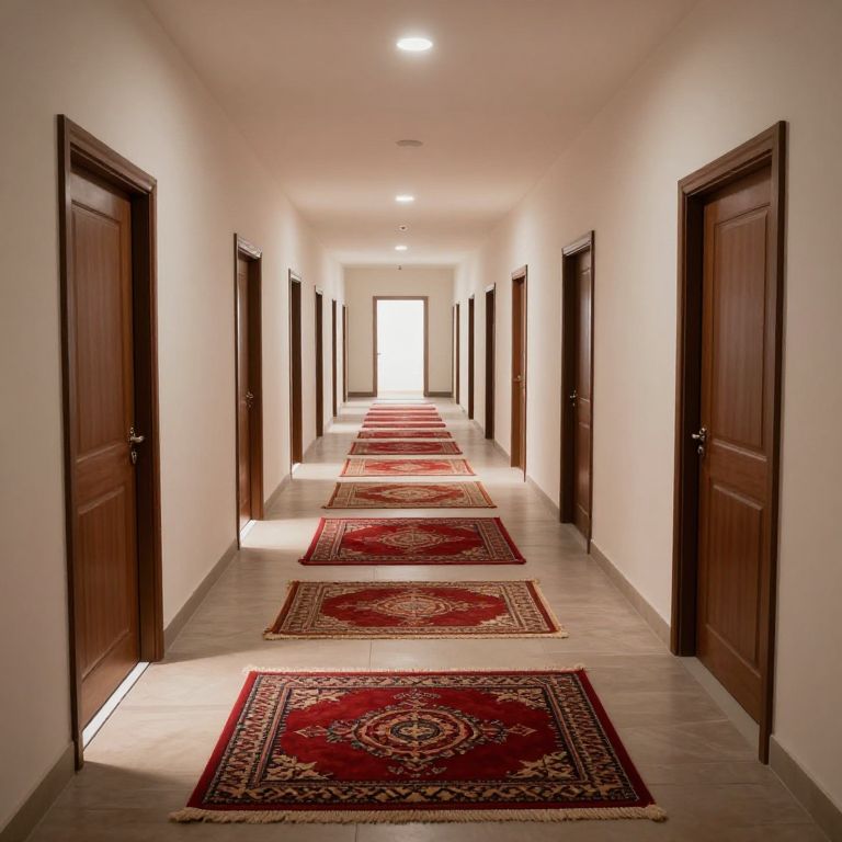 In an endless hallway where gravity defers to thought, floating rugs guide travelers towards doors that only open for contradictions.