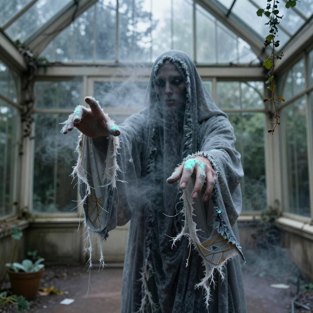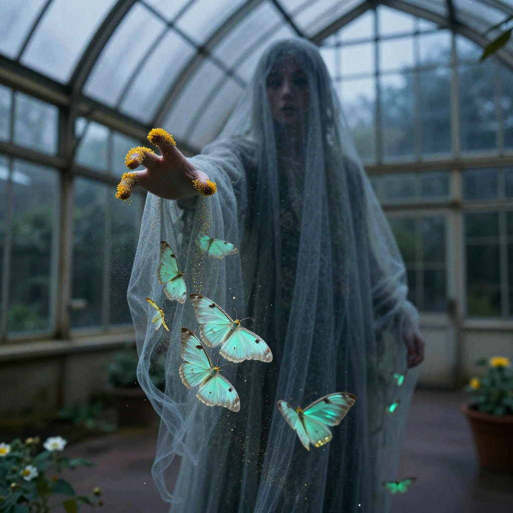 Phosphorescent Moth-Wraith in Overgrown Conservatory