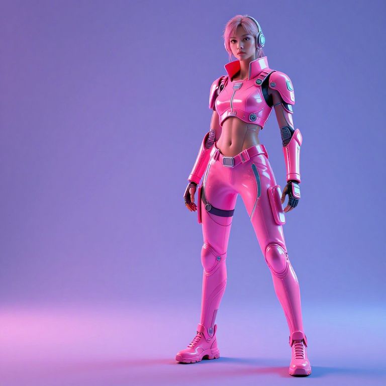 Strawberry Glowart, full body view, cyberpunk fighter, negative space, neon colors, highly detailed,
