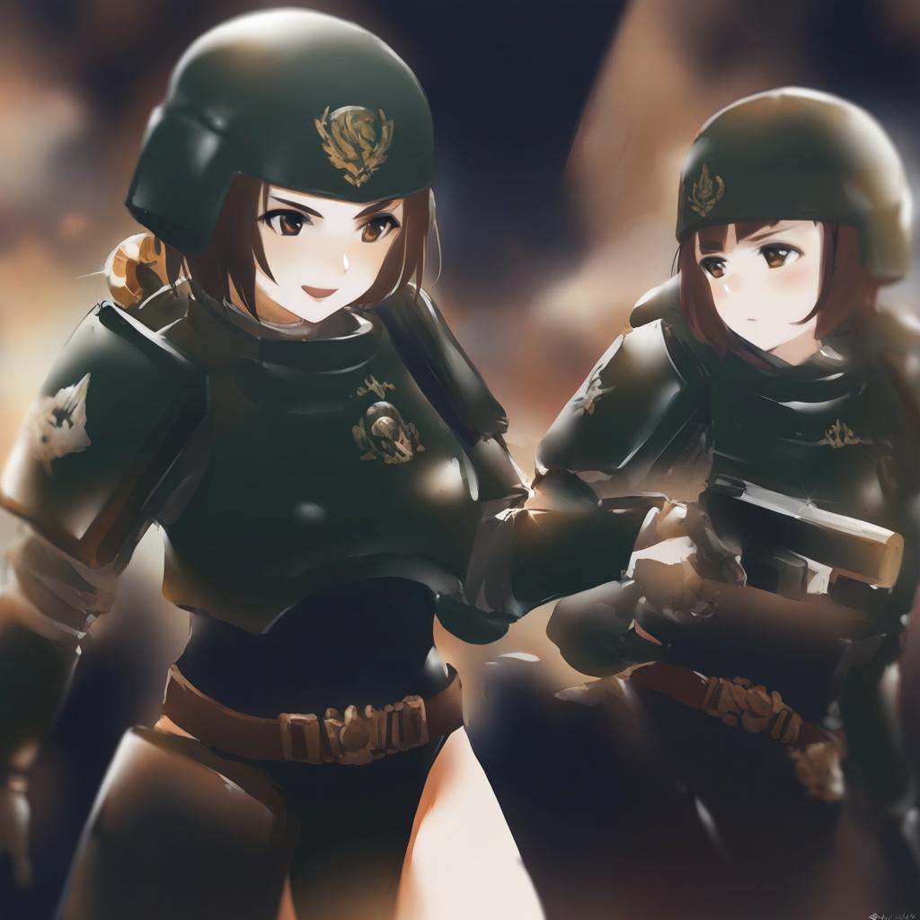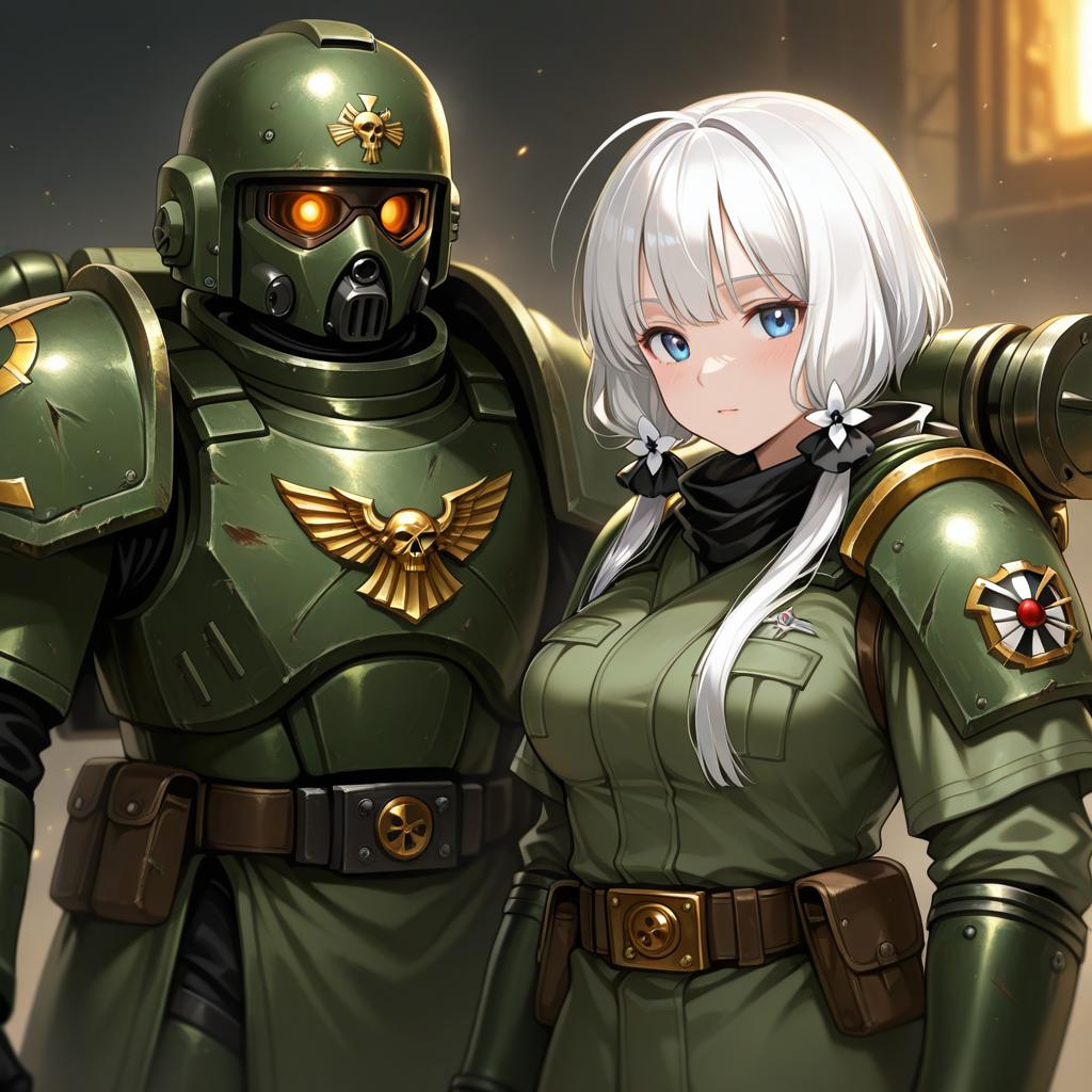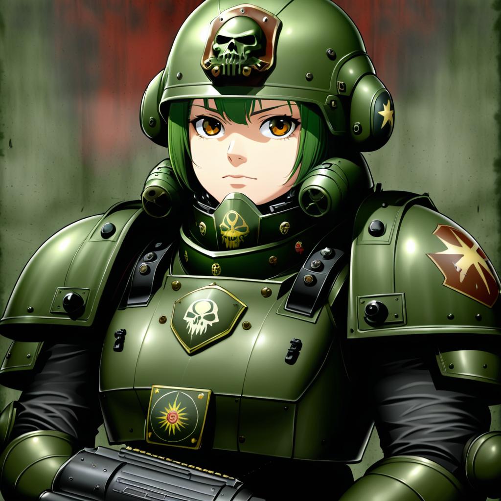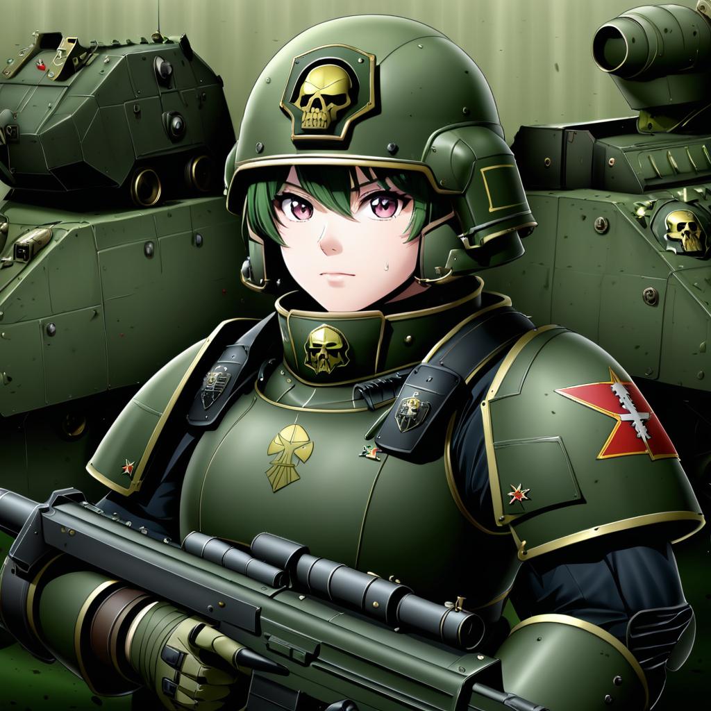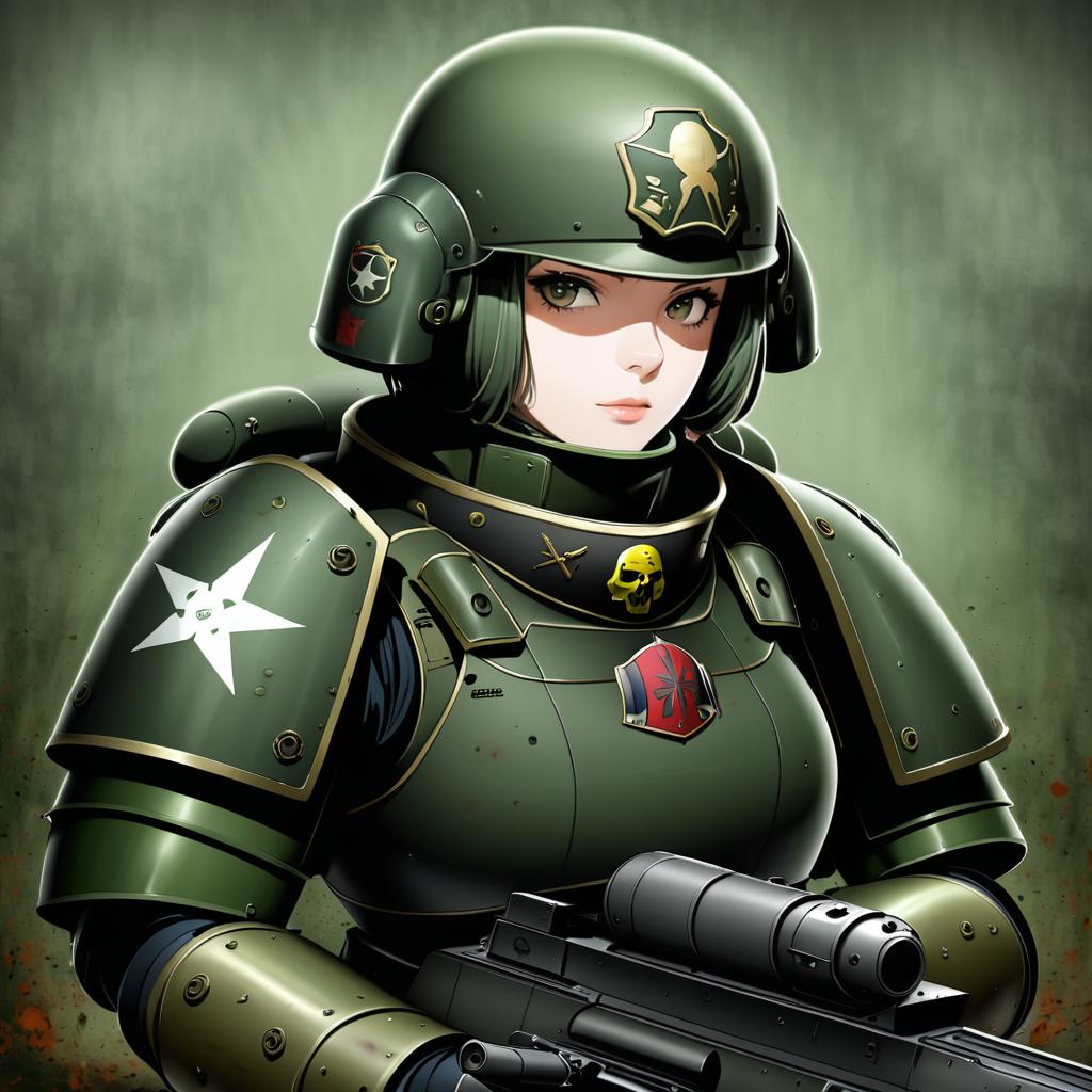 Astra militarum, warhammer 40k, 1girl, short hair, medium breasts, military uniform, armor, helmet, military uniform, by artist swkl:d, leet