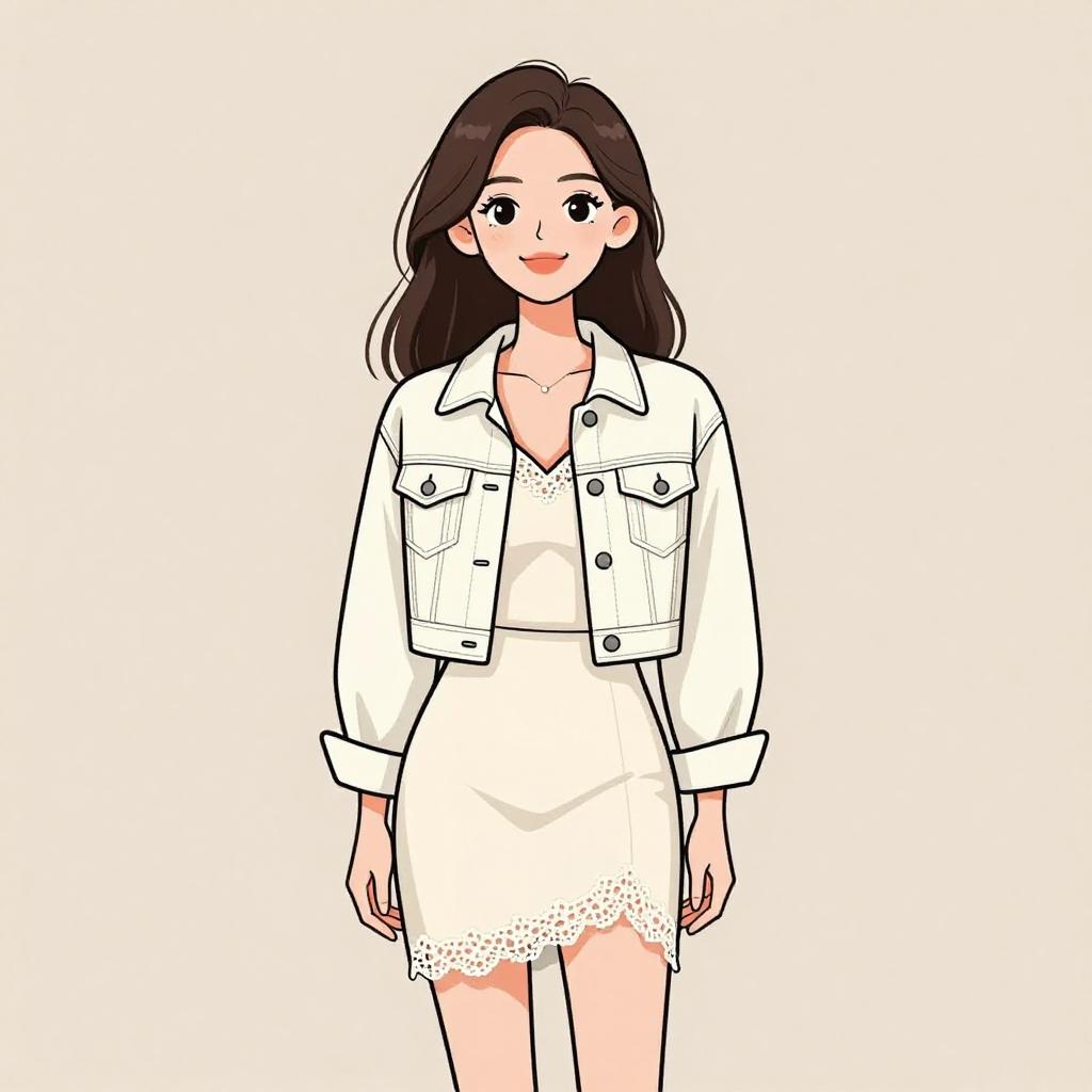 Woman with pretty face and pretty hair. smiling Woman, casual, faux shearling vest in tan with cream lining, straight cut, sleeveless, white scoop neck t-shirt, delicate pendant necklace, light makeup, loosely curled hair. --sref 1467