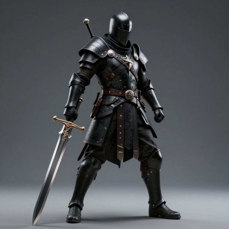 Line black mercenary D&D full body battle pose, greatsword, cinematic light, volumetric light, hyper detailed, intricate details, hyperrealistic, Canon EOS R5 F1. 2 ISO100 35MM,