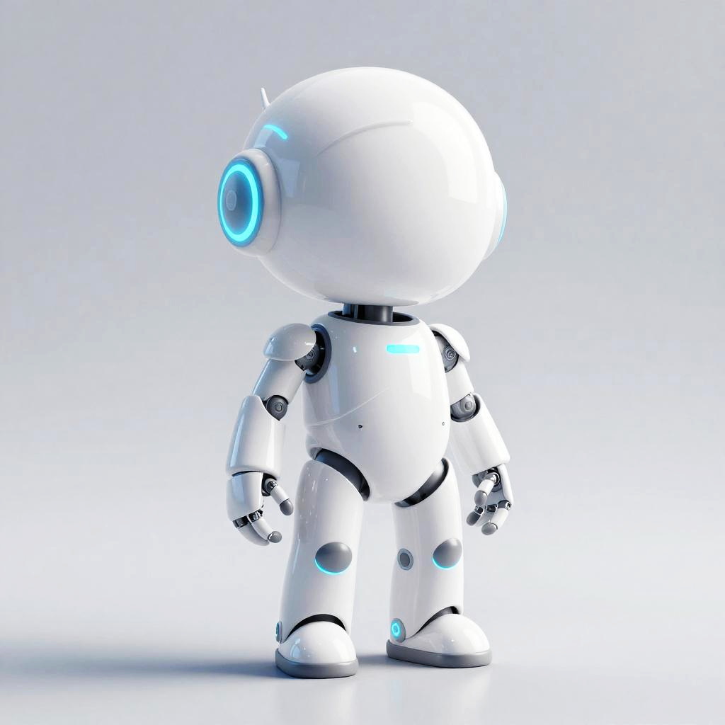 3d character generator ai producing a robotic character with smooth white surfaces and blue LED highlights, minimalist sci-fi environment, realistic shadows and reflections, high detail 3d modeling, futuristic concept art style