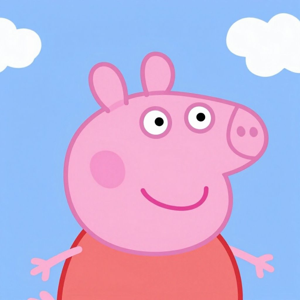 Peppa Pig face, adorable cartoon style, soft pastel colors, large expressive eyes, round pink cheeks, playful and cheerful expression, vibrant children's illustration, smooth lines and gentle shading, background with subtle colorful patterns