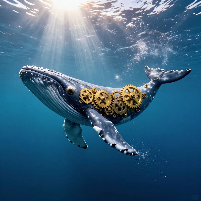 Clockwork Whale in Sunlit Ocean