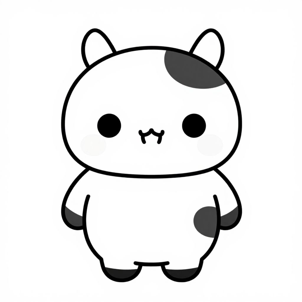 Kawaii Influencers Character concept, coloring book page for a young child, simple, clean lines, pixar style cow,
