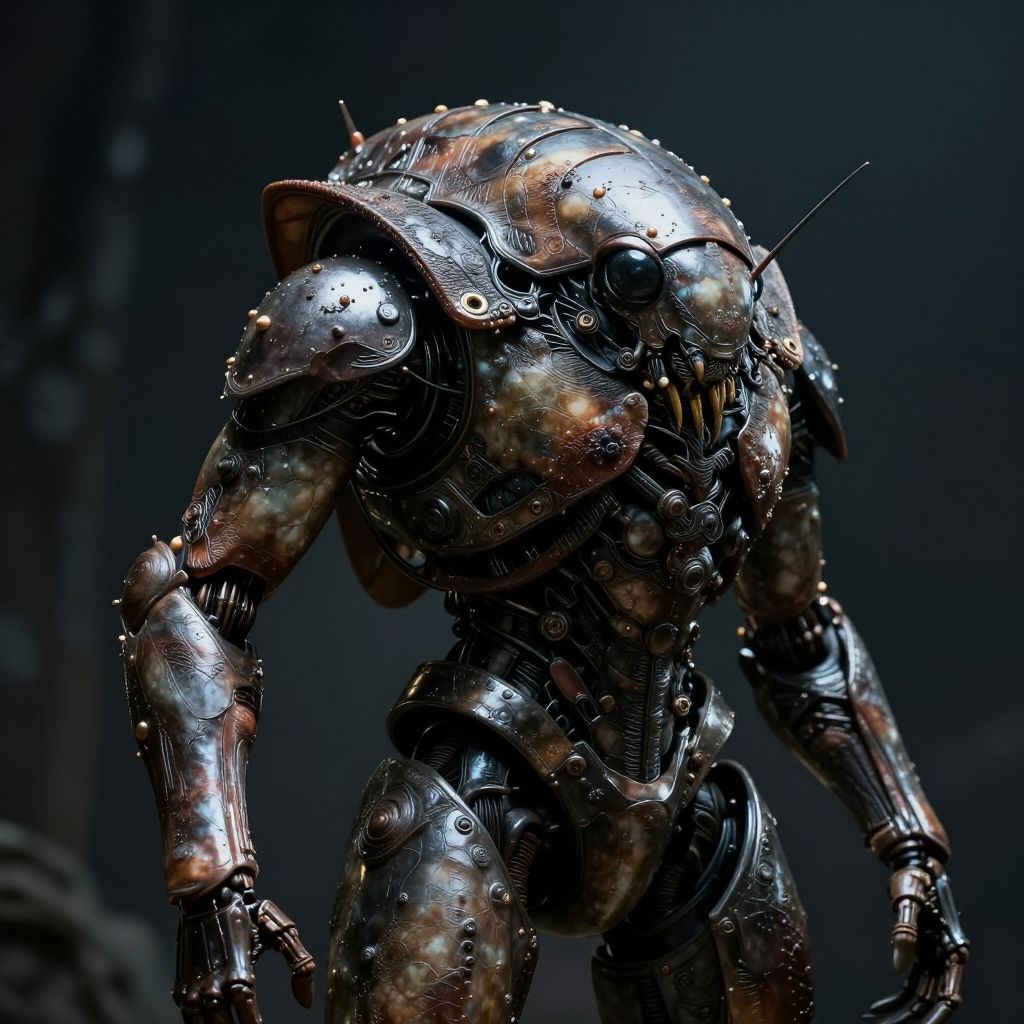 Power Ranger redesign with steampunk aesthetics, brass and leather armor, mechanical gears integrated in suit, smoky industrial background, dramatic shadows, powerful pose