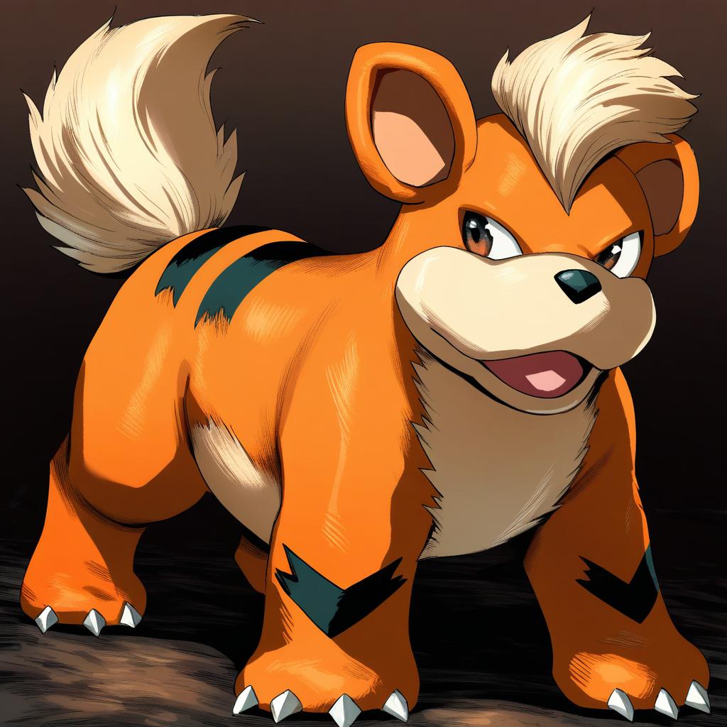 Illustration of Growlithe, pokemon in the style of Fukahire (ruinon)