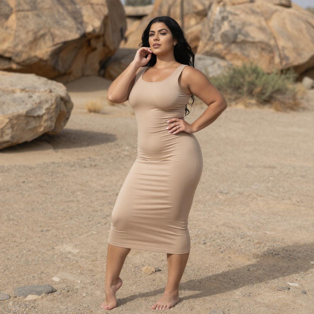 Confident Curvy Woman in Brown Dress