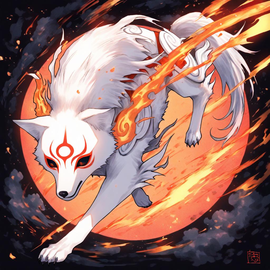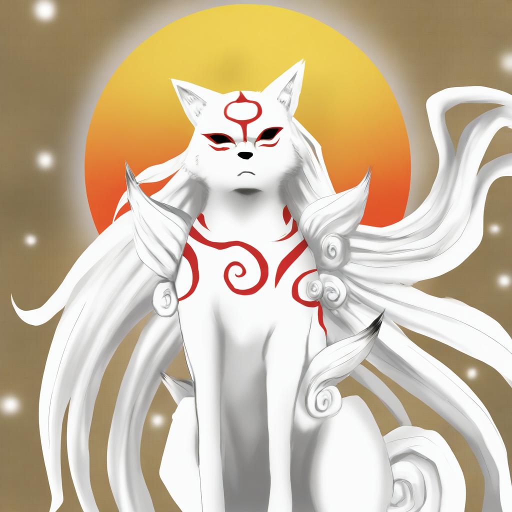 Illustration of Amaterasu (ookami), ookami (game) in the style of Hyurasan