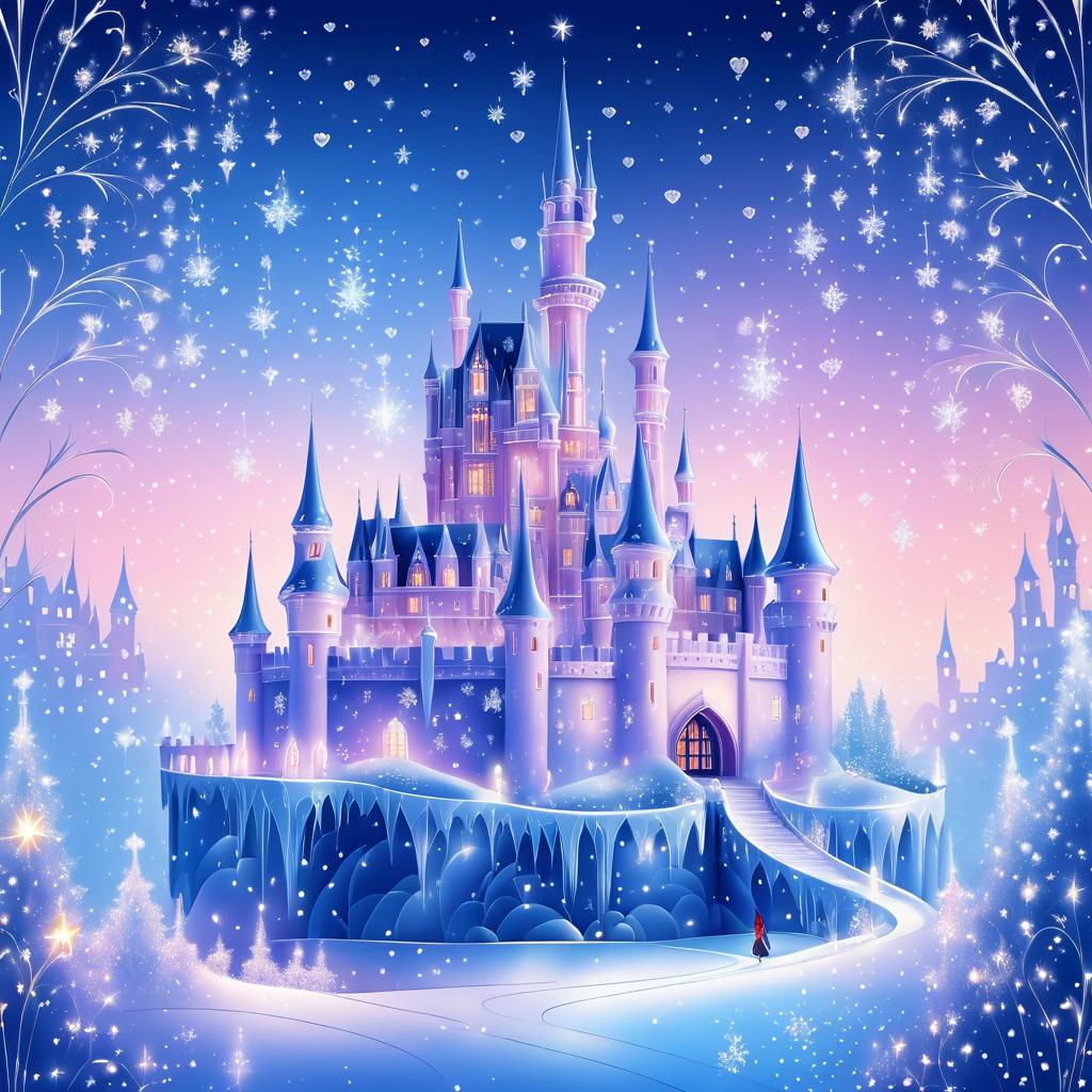 Ice Castle with Floating Hearts and Snowflakes