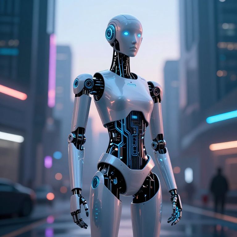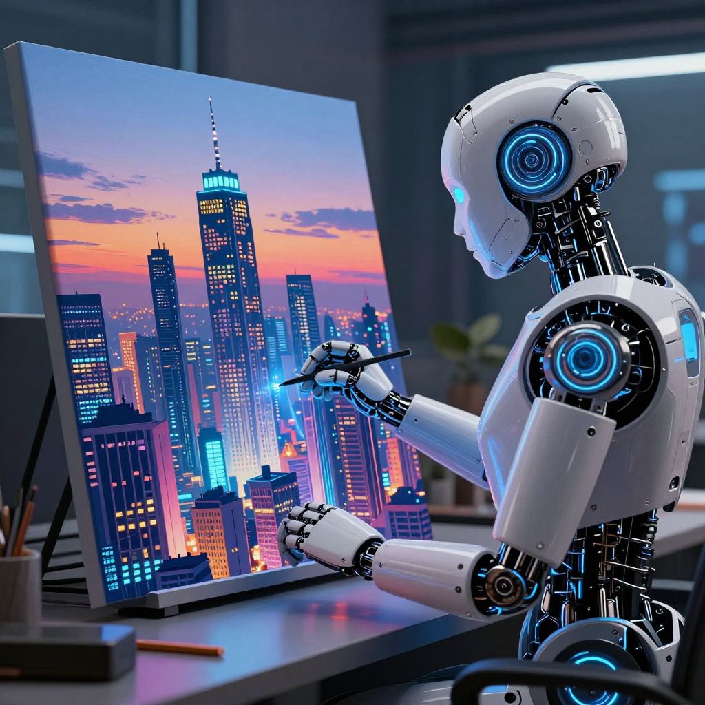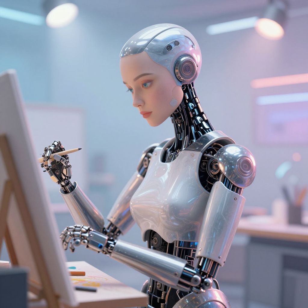 Humanoid Android Creating Surreal Portrait