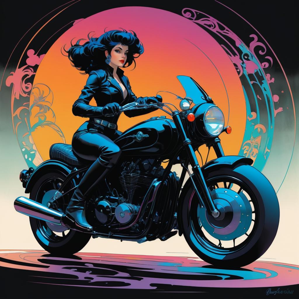 Stylized Woman on Elegant Black Motorcycle
