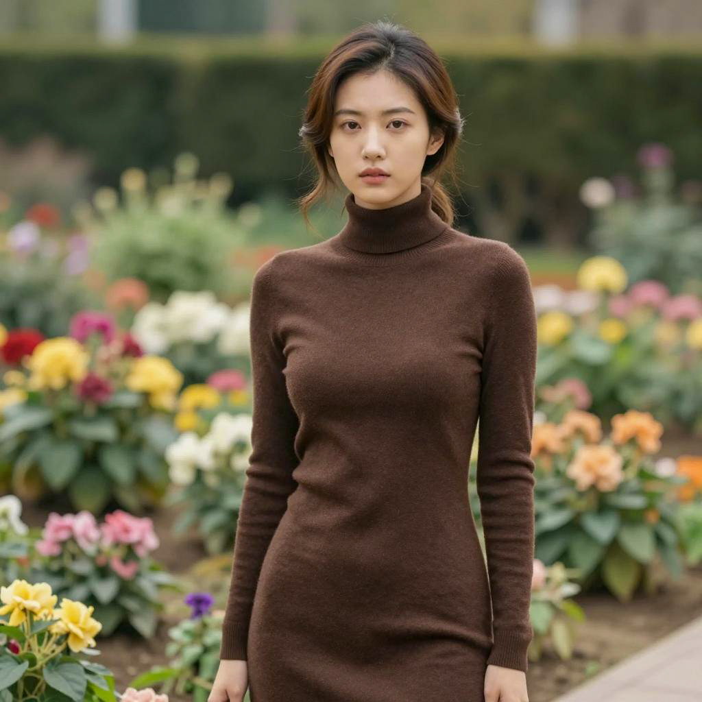 A woman in a stylish dress embodies the analog film aesthetics, sitting gracefully by a rocky creek surrounded by lush greenery. The natural lighting and serene environment enhance the timeless and classic feel of the photograph.