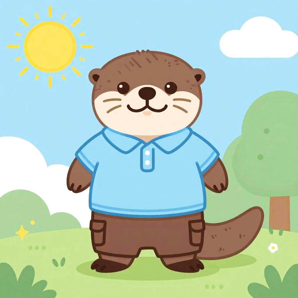 2D flat art of a dolphin in a light blue tank top and boardshorts, vector art style, set on a sunny day with bright colors. Cover art illustration, cute and cheerful, capturing a relaxed, vibrant scene.