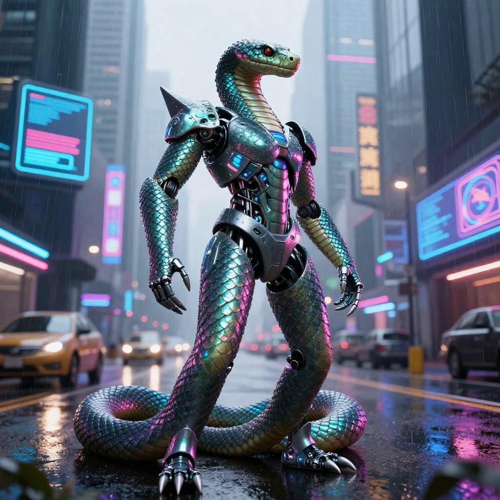 Futuristic chainmail cape made of metallic nano-links, sleek design on a cyber knight, neon cityscape background, glowing edges, high-tech fantasy art style, dynamic pose