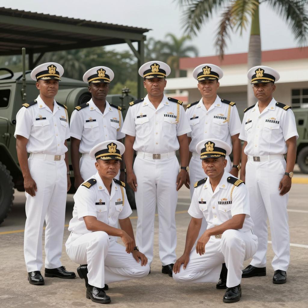 Four Men on a Ship's Deck Under Blue Sky