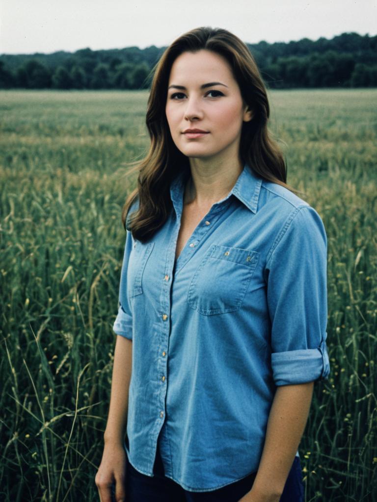 Bobbi Morse, woman in a blue shirt standing in a field