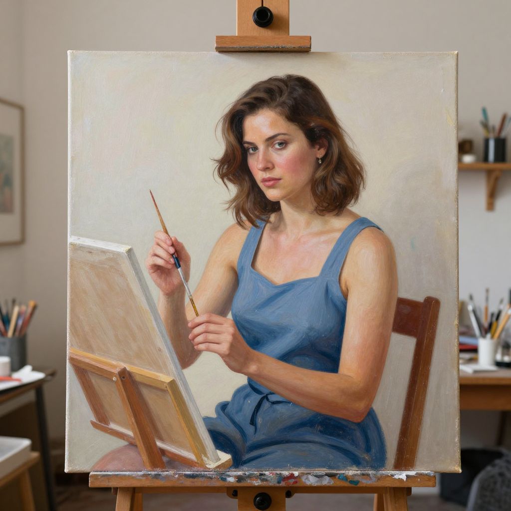 Woman Artist Painting in Studio