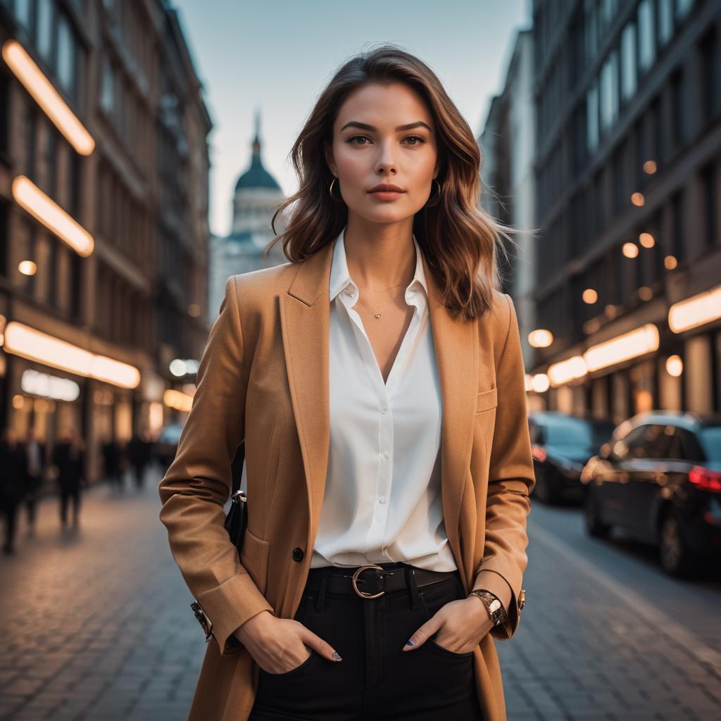 Confident Woman in Stylish Modern Cityscape