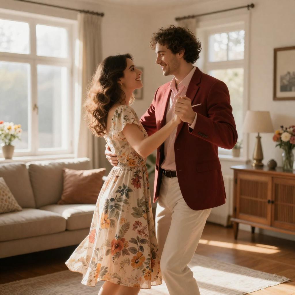 Young Couple Dancing on Balcony Lift