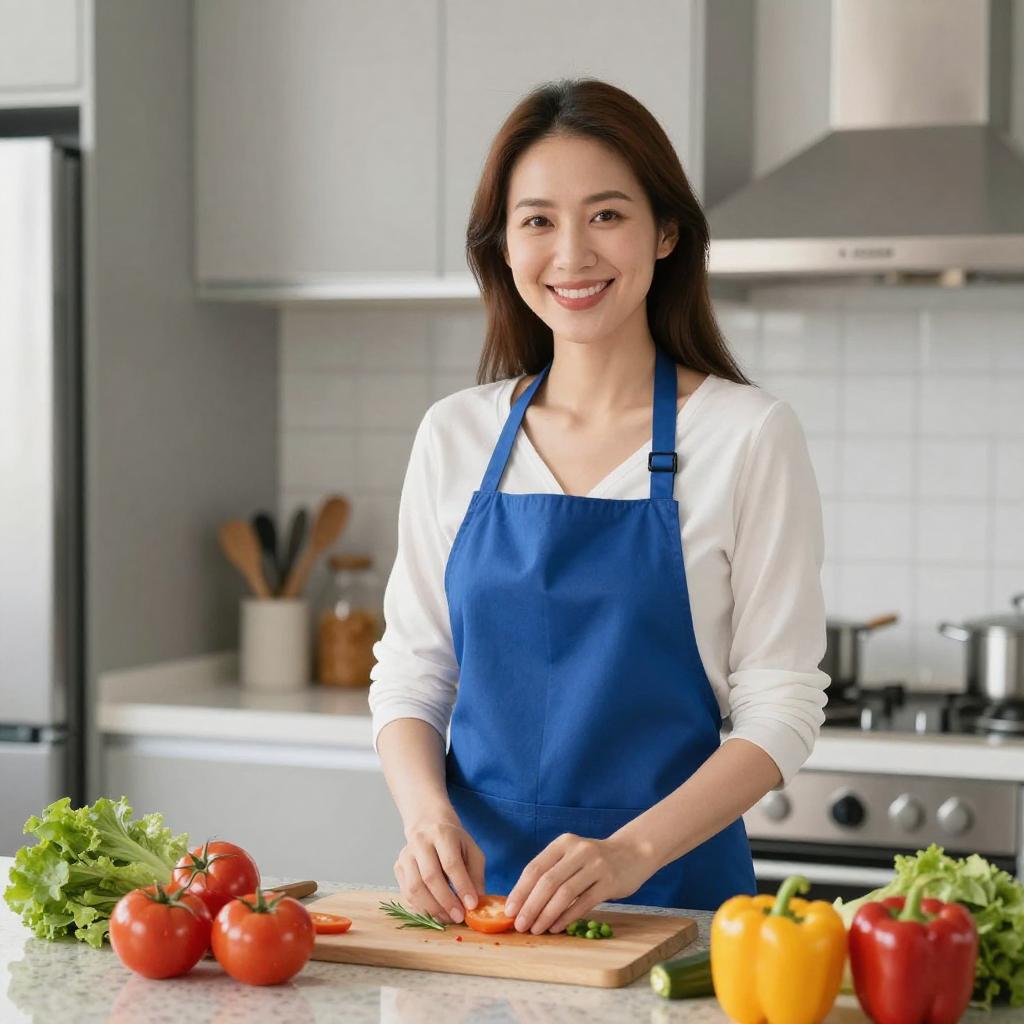 Smiling Asian Woman in Modern Kitchen