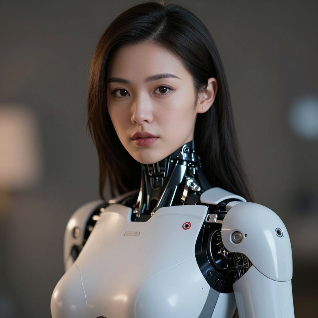 Medium shot cinematic flash photography, photograph of incredibly beautiful and alluring female cyborg looking into camera. smooth, elegant, sharp focus h 1216