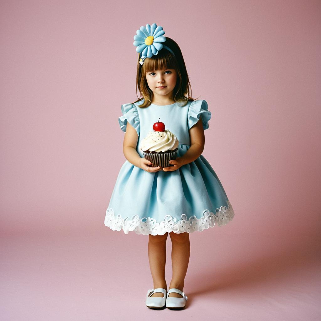 Preemie clothes fancy dress,solo, dress, realistic, 1girl, hairband, hair ornament, photorealistic, flower, fine art parody, blue eyes, hair flower, child, looking at viewer, short sleeves