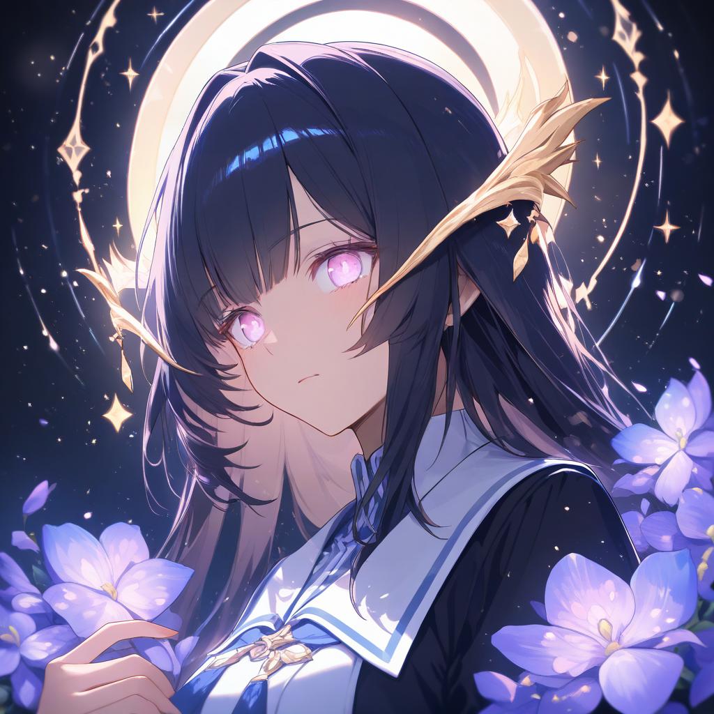 Ethereal Anime Girl with Glowing Halo and Flowers