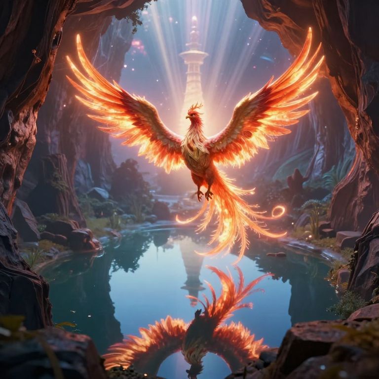 Phoenix Soaring Over Moonlit Garden
