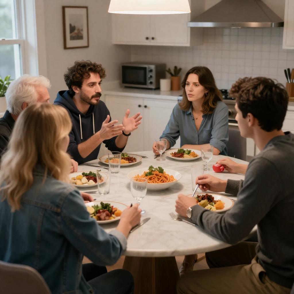 Dining Scene with Intense Expressions