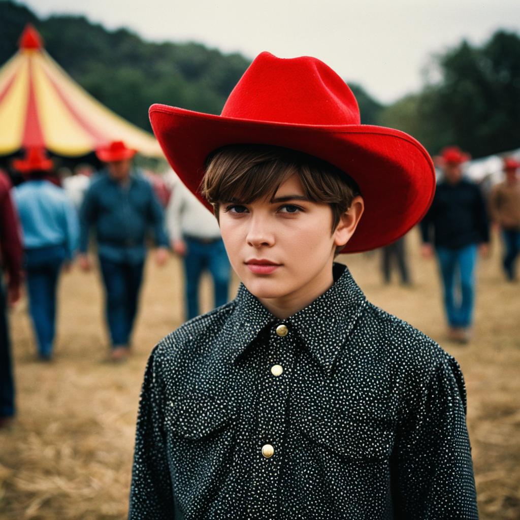 Boy in Red Cowboy Hat at Outdoor Carnival