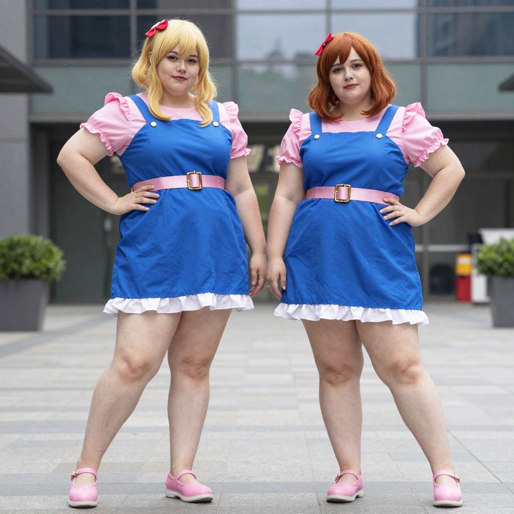Plus Size Anime Cosplayers in Blue and Pink Outfits