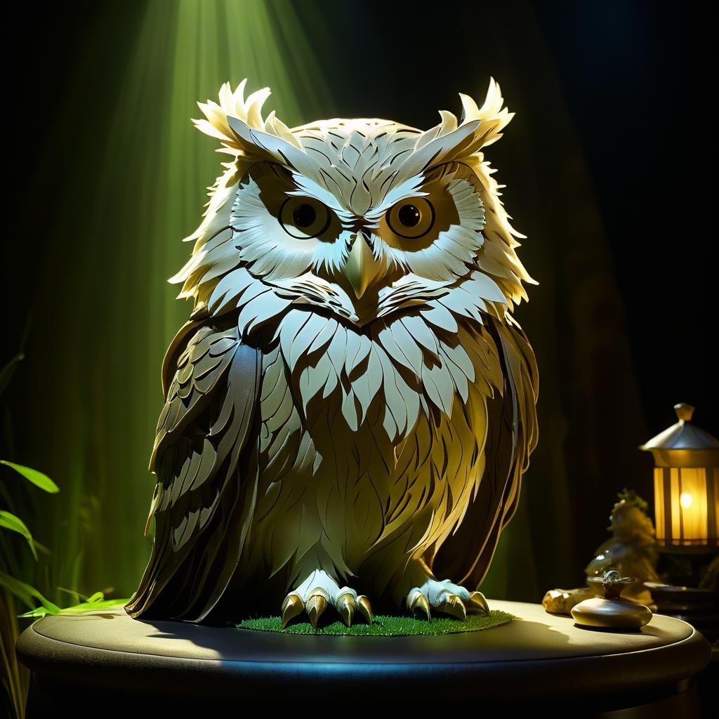 Portrait of a wise owl as a sage, dramatic lighting, cinematic, ultra-realistic, styled by Claire Wendling, Hayao Miyazaki.