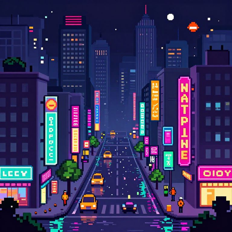 Pixel Art Neon Cityscape at Night