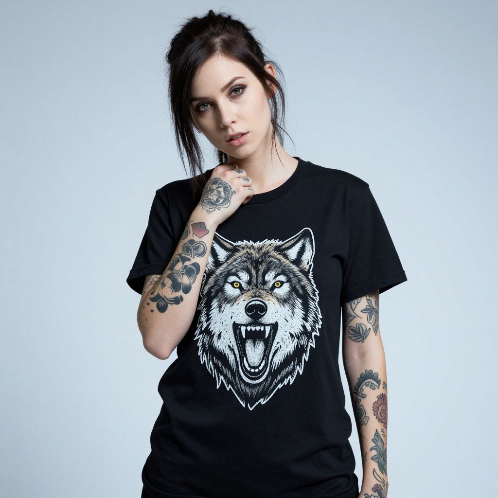 Tattooed Woman with Wolf T-Shirt