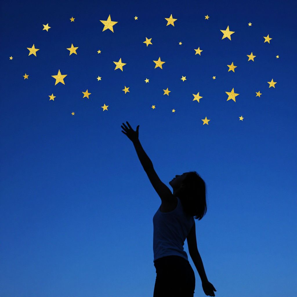 Empowered Woman Reaching for Stars