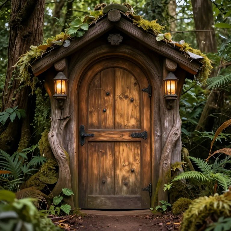 A whimsical portal to wonder, this enchanting fairy door invites curiosity and imagination, nestled amidst the earthy embrace of nature, whispering tales of magic and the timeless allure of the unseen.