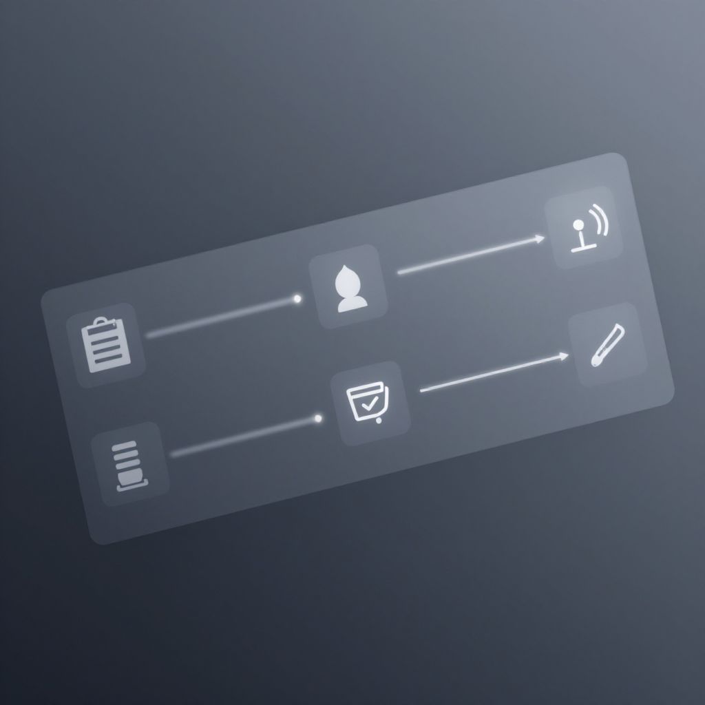 A sleek interface with floating icons and glowing information scent trails connecting elements, modern minimalistic design, soft gradients, and elegant digital aesthetics
