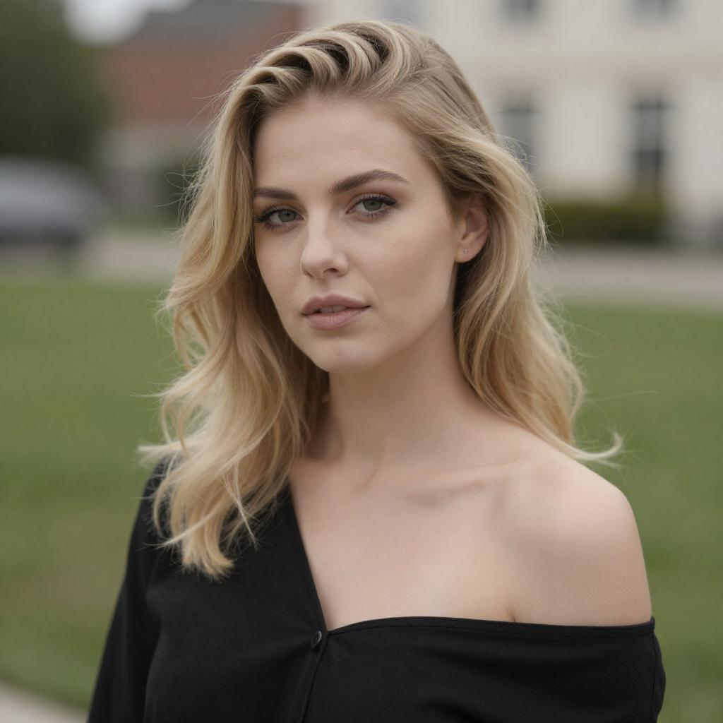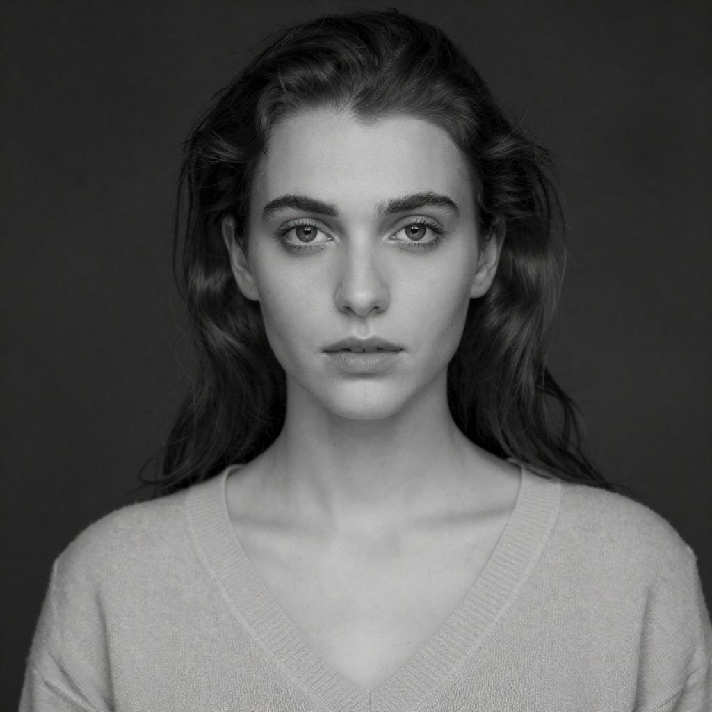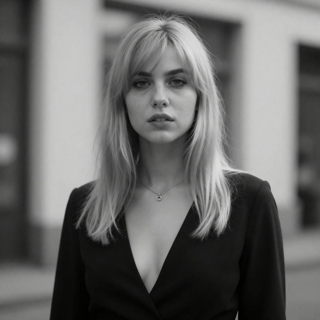Moody Black-and-White Blonde Portrait with Bangs