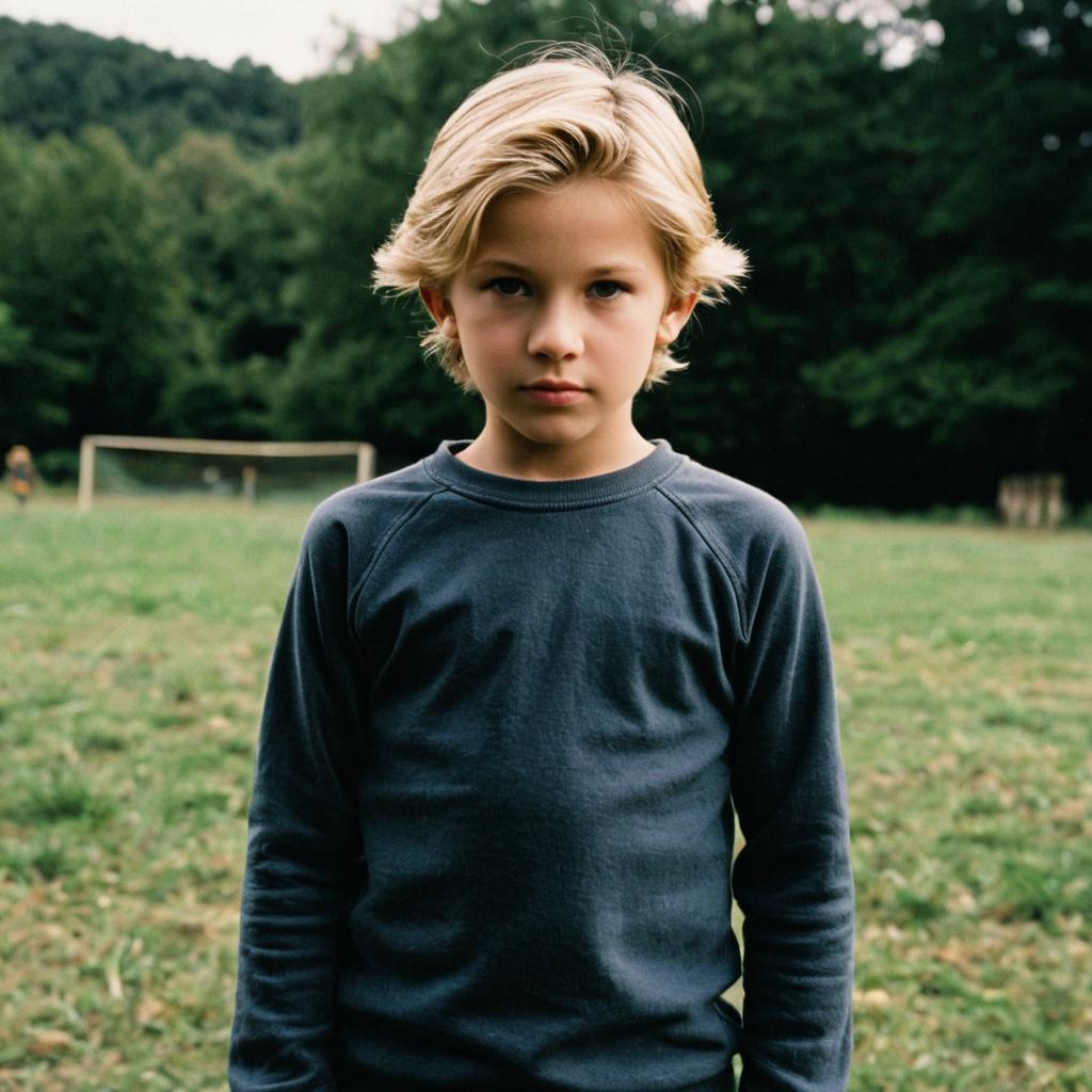 Child blue sailor costume,solo, sailor hat, shorts, hat, sailor collar, male focus, 1boy, realistic, blue shorts, sailor, blonde hair, blue sailor collar, long sleeves, rock, buttons, outdoors, standing, water