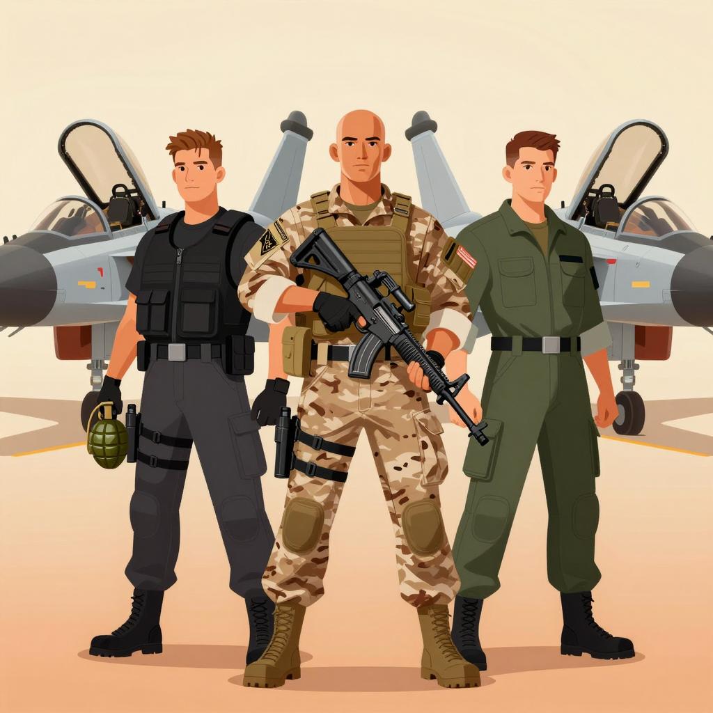 Five men in dark tactical gear with oxygen tanks on their backs, standing in a close formation. Blue and green smoke fills the background. Front man kneels, others stand behind him. Serious facial expressions. Digital illustration.
