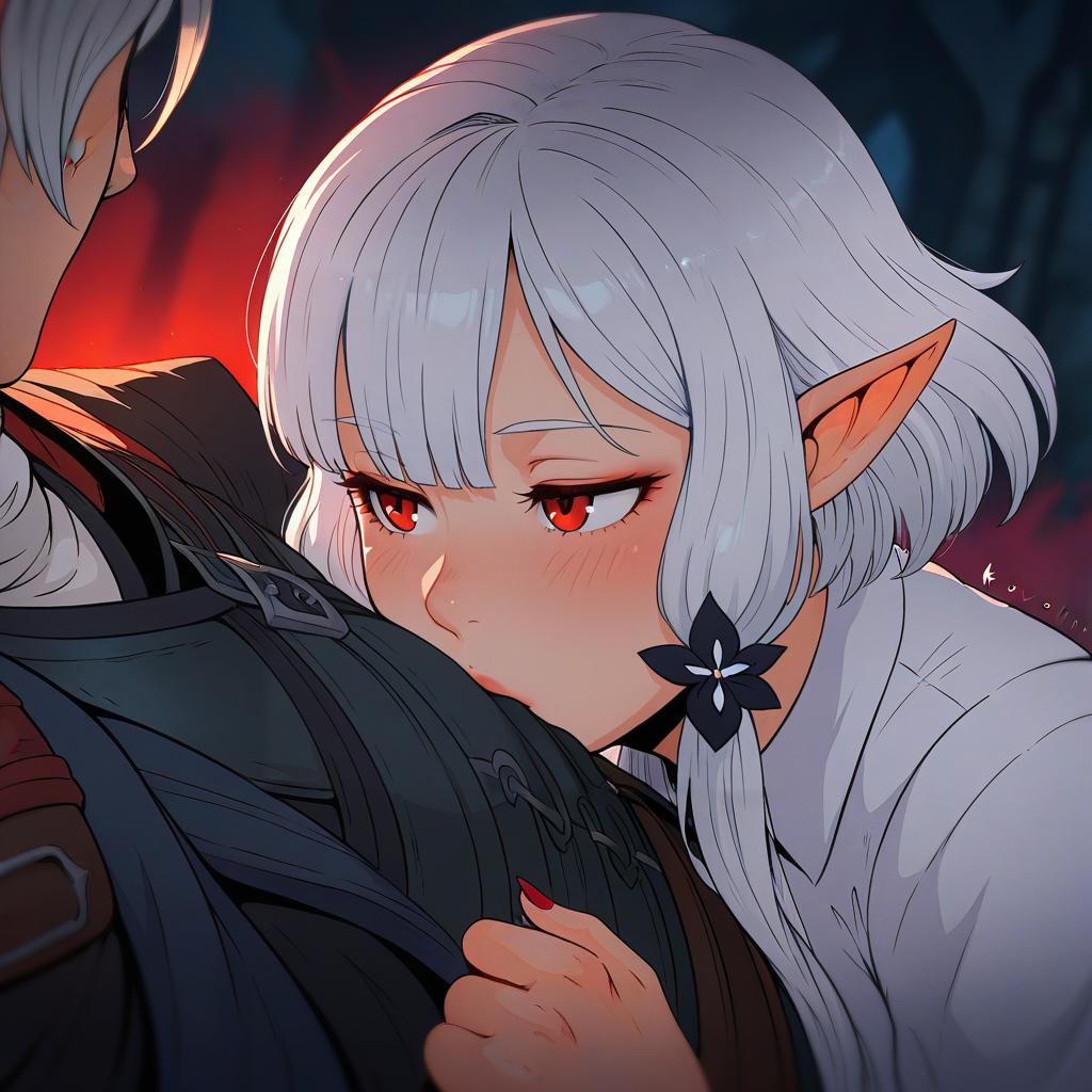 Astarion, baldur's gate, 1boy, red eyes, short hair, white hair, grey hair, white shirt, vampire, elf, by artist koyorin, illustrious