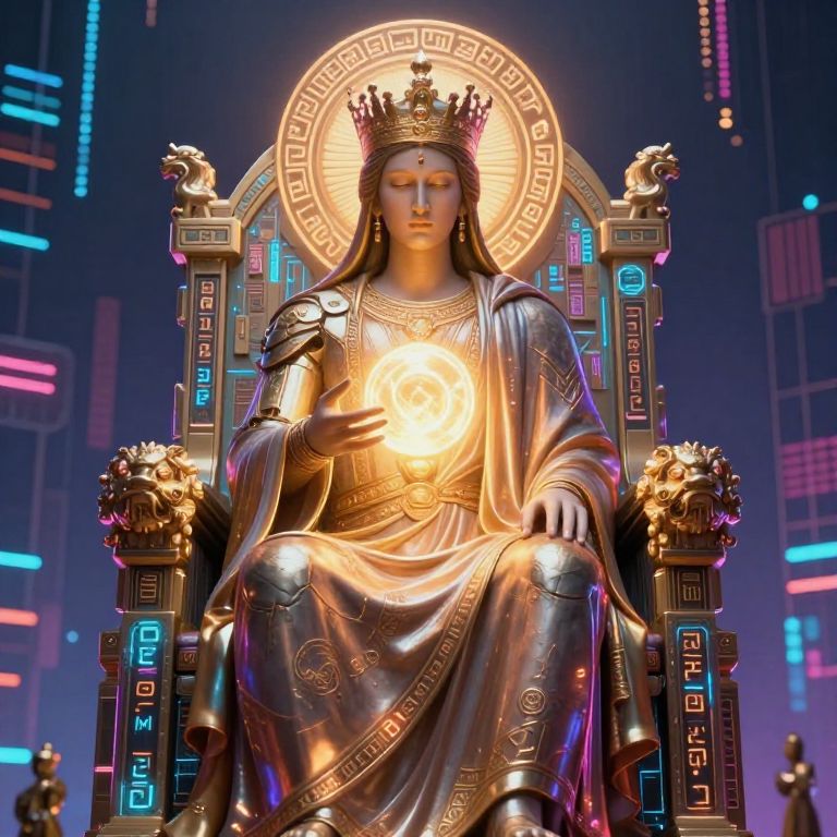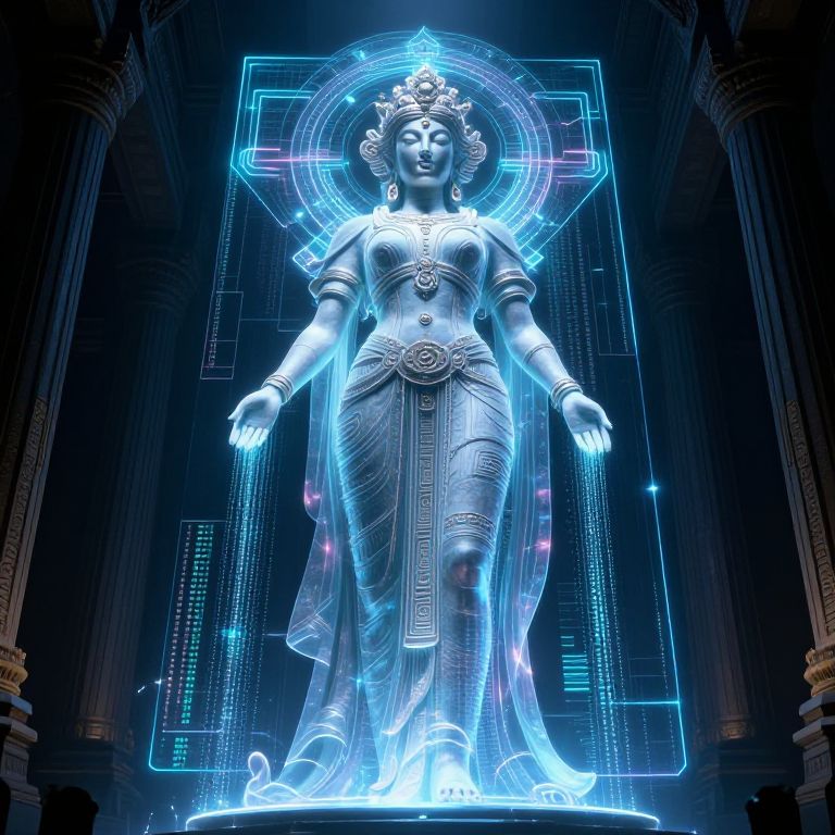 Holographic AI Goddess Over Digital Temple