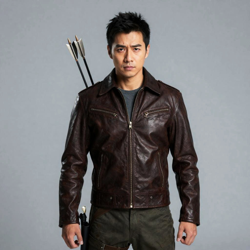 Hawkeye Man, man in a costume with arrows and a leather jacket