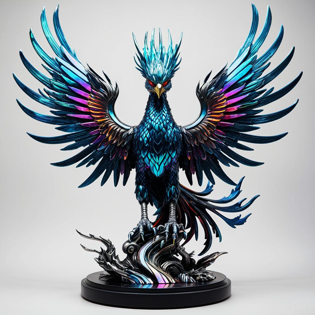 A floating cyberpunk koi fish lantern crafted from neon-lit acrylic, polished chrome, and semi-transparent resin, designed by Alex Ross and Syd Mead, with intricate linework, hyper-detailed textures, vibrant colors, super sharp focus, high contrast, and a matte finish.