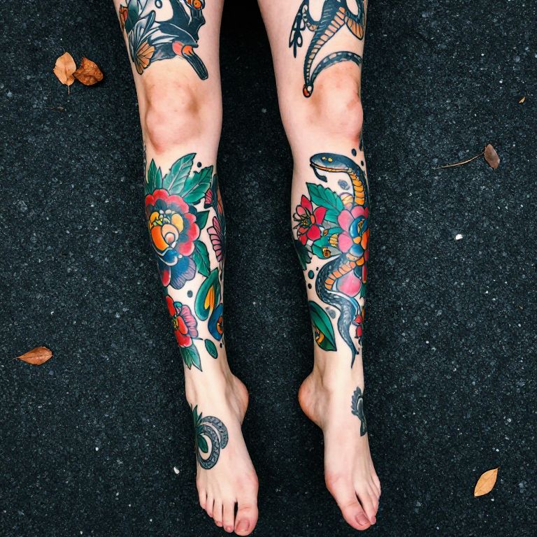 Vibrant Tattooed Legs on Asphalt