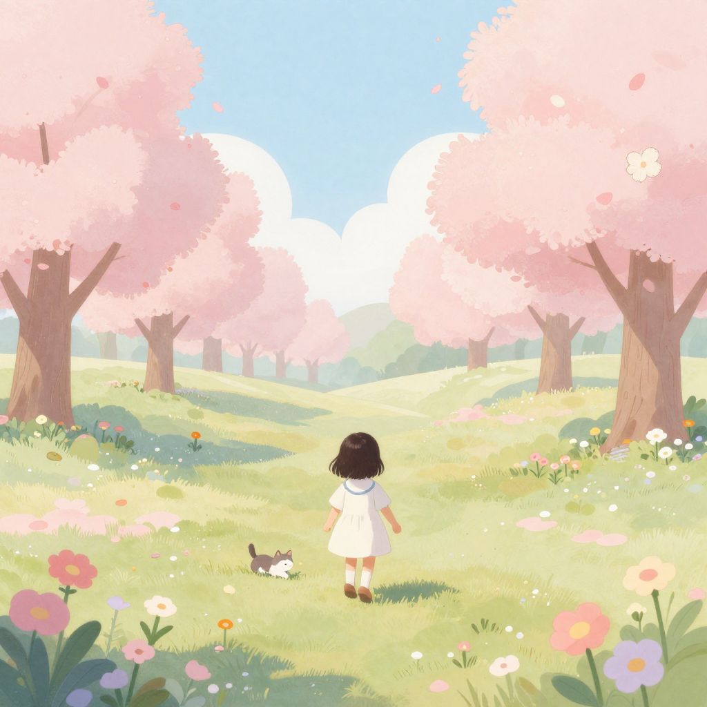 A whimsical haven of serenity and imagination, where pastel hues and floral motifs weave a dreamlike narrative of childhood wonder, inviting whispers of innocence and the boundless freedom of play.