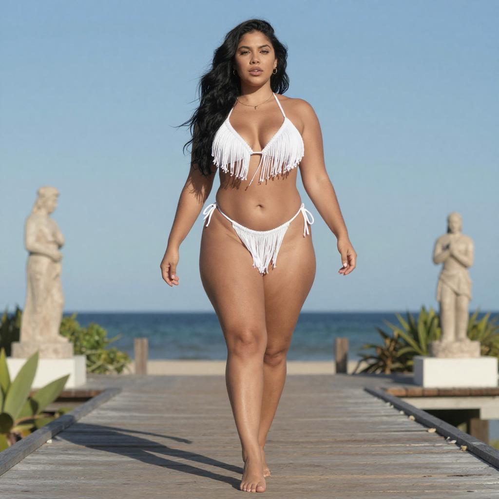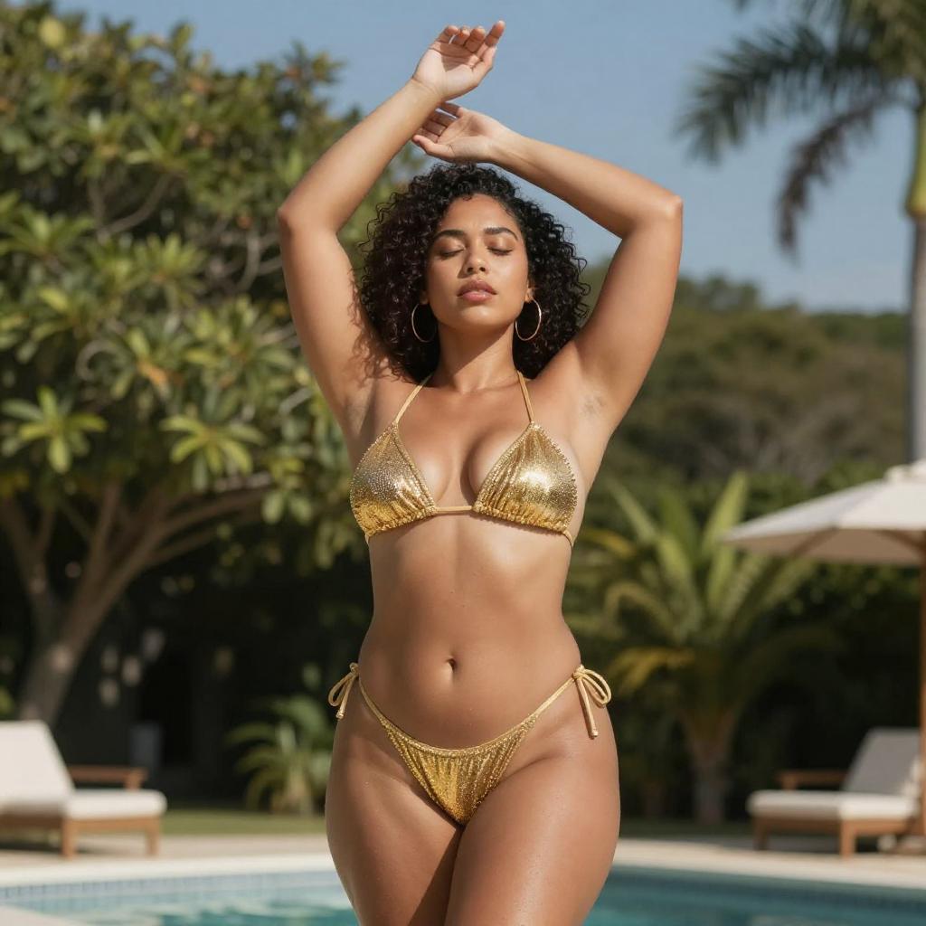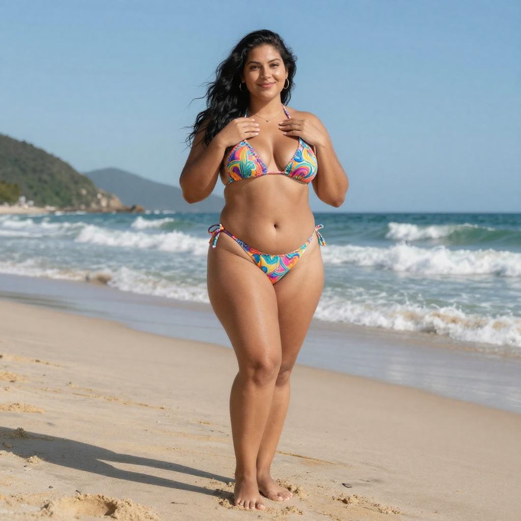 Confident Curvy Woman in Tropical Outfit