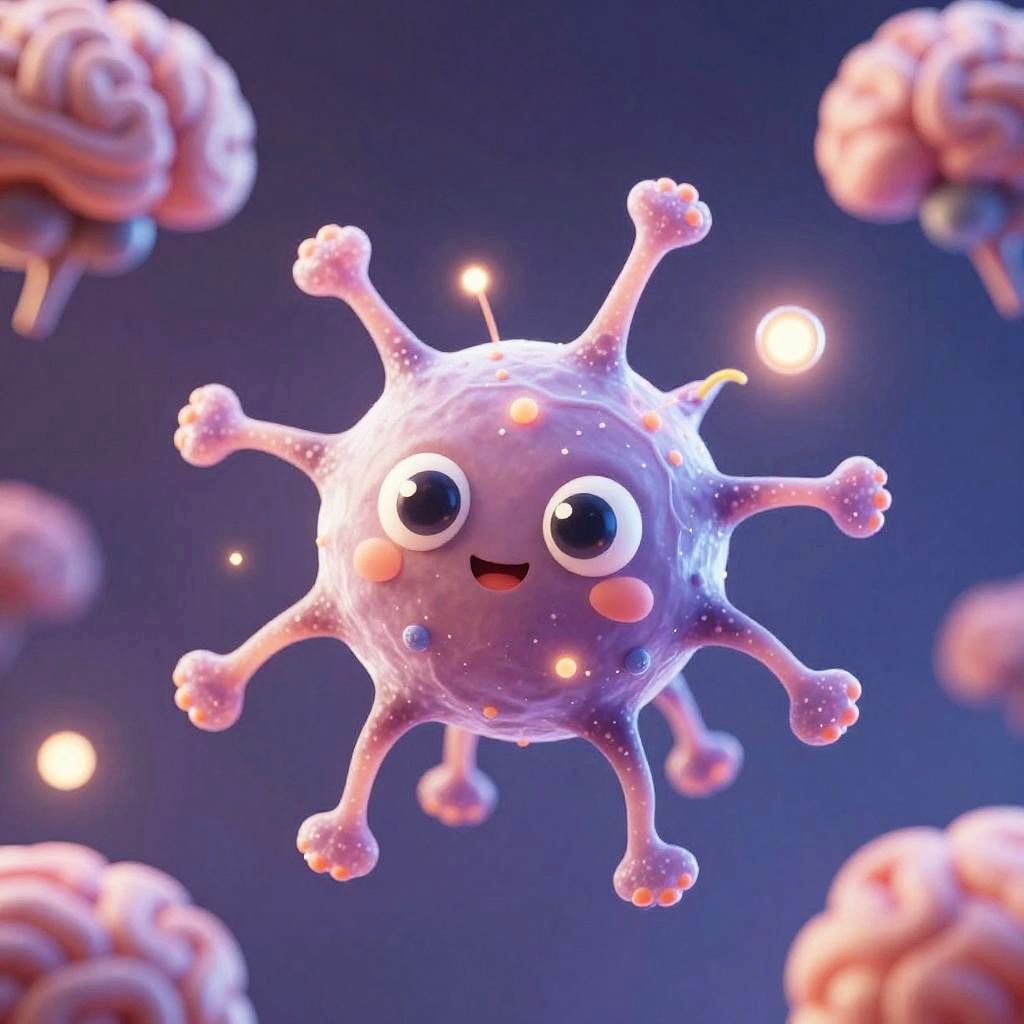 Adorable Cartoon Neuron Character